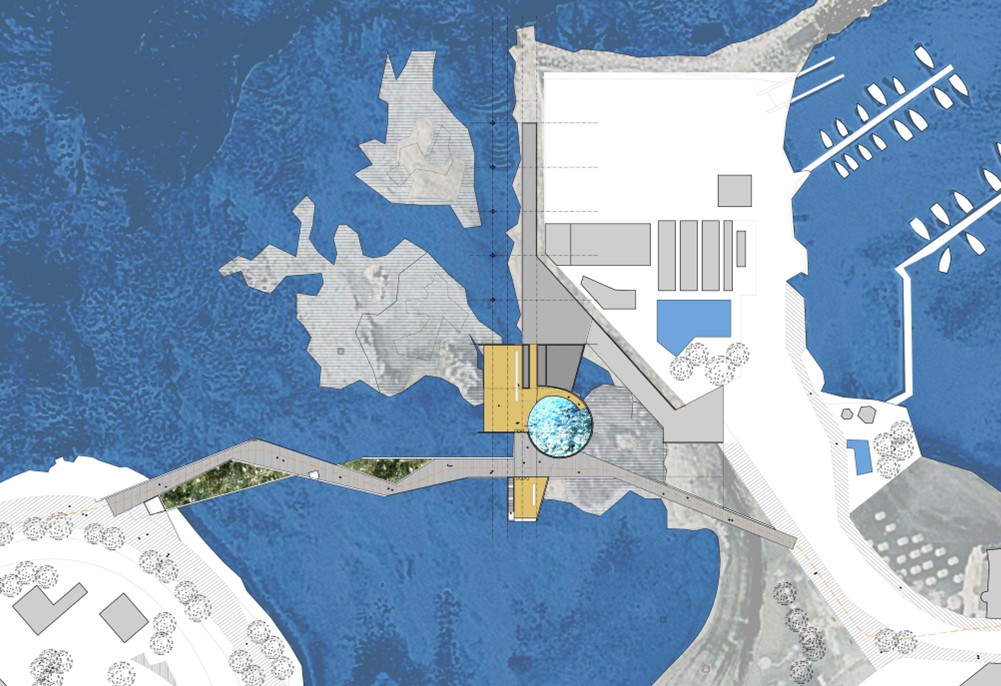 Proyecto arquitectónico, acuariológico y museográfico para la construcción de un gran acuario marino en el que se presenta el mar como un gran centro de investigación, de biodiversidad y de producción de energía. Pone en valor la enorme potencialidad de los recursos marinos chilenos