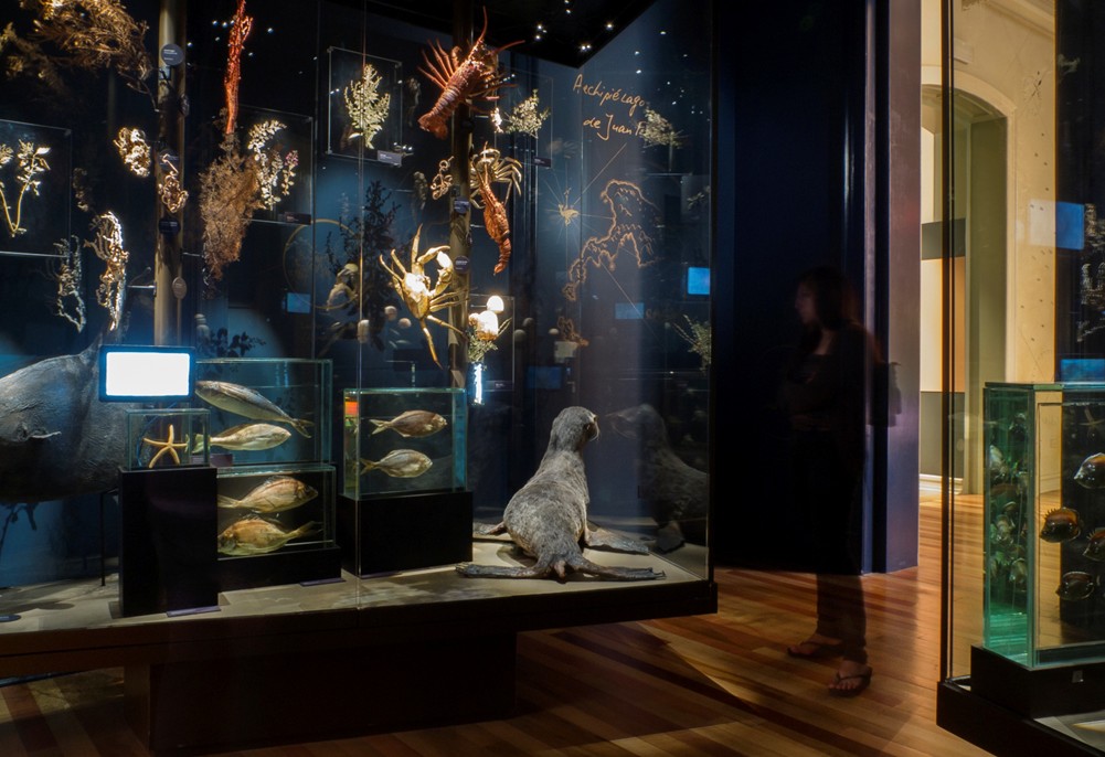 Se elaboraron para su exhibición maquetas hiperrealistas, a tamaño natural de árboles, palmeras, aves, tiburones, etc.